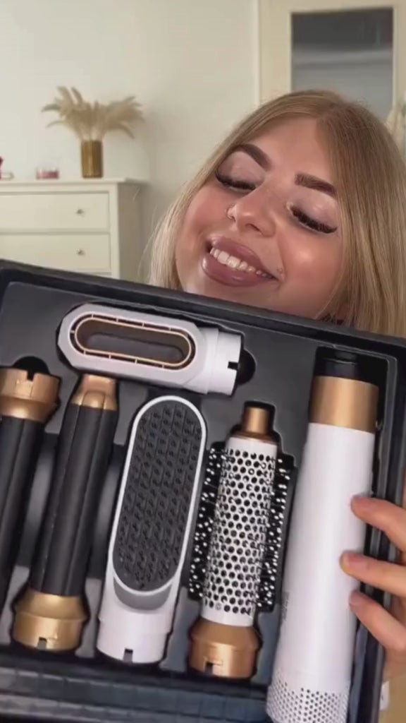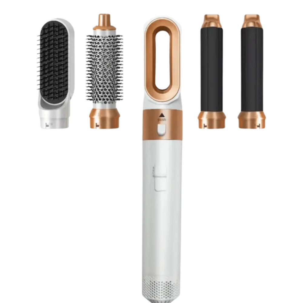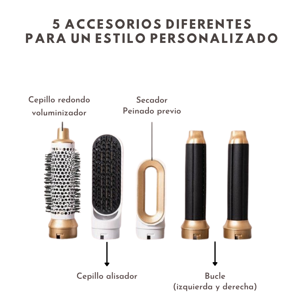 ¡No busques más! Descubre AeroGlow Secador y Moldeador 5 en 1, la herramienta revolucionaria que te permite secar, alisar, rizar y dar volumen a tu cabello en un solo paso.